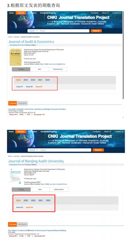 为积极响应国家文化“走出去”战略,深入推动中国学术成果的全球共享,自2024年起,《审计与经济研究》与《南京审计大学学报》启动了“国家审计研究优秀论文双语出版工程”。该工程旨在打破语言壁垒,将两刊中关于中国国家审计的最新、最具代表性的研究成果,系统性地翻译成英文,面向全球读者推广。 截至目前,该工程已开展四批次、共计73篇优秀论文的翻译与出版工作。这些精心打磨的双语文章,已成为国际学者、留学生及相关政策研究者了解中国审计理论发展与制度创新的重要窗口,极大地便利了海外学界对中国审计研究的检索、阅读与引用。